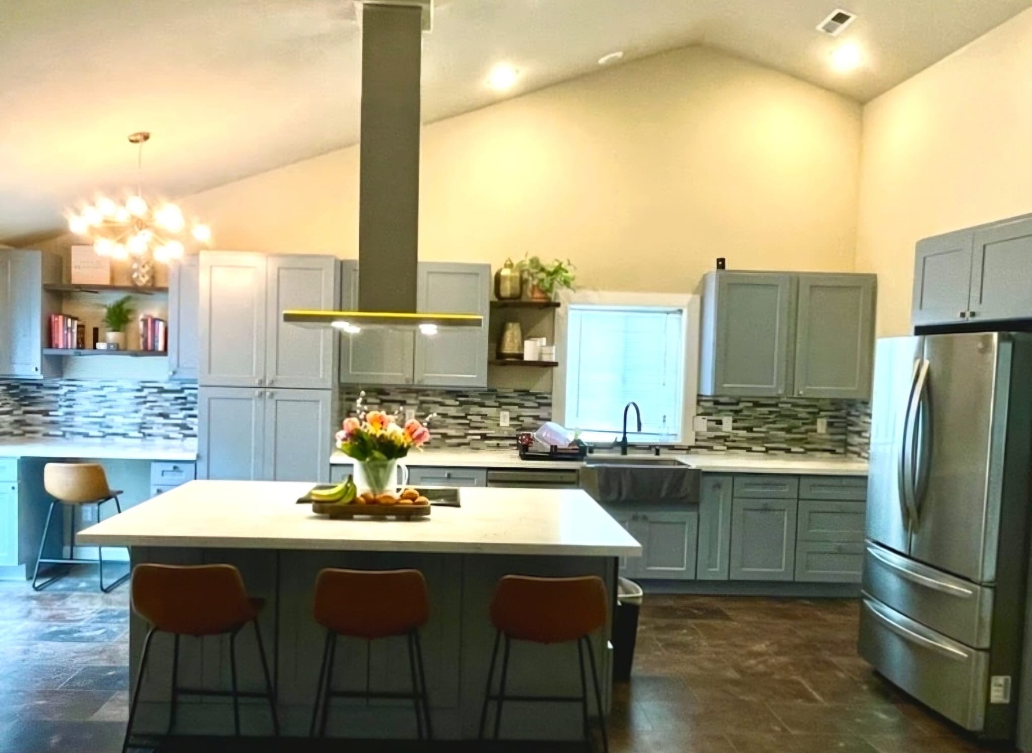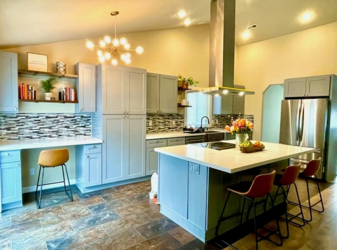 The client envisioned a transformation for their kitchen, aiming to create a more open and inviting space by removing a wall to connect it with the living room, which they aptly named “The Great Kitchen.” We delivered a stunning design featuring an oversized island, perfect for entertaining friends and family. This fully renovated kitchen seamlessly merges with the living area, enhancing both functionality and aesthetic appeal. The result is a beautifully cohesive space that invites gatherings and showcases the warmth of home.